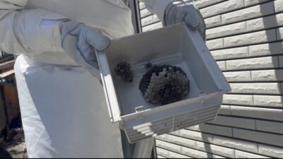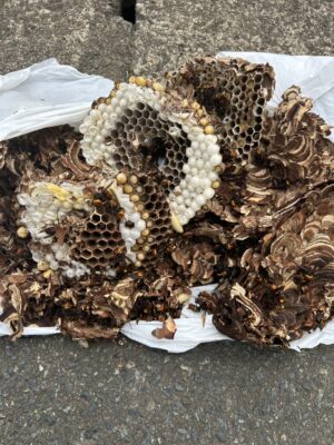 こんにちは、ロスクです!今年の九月は、蜂の巣駆除のご依頼を多くいただきました。特にスズメバチやアシナガバチの活動が活発になる時期で、軒先や、換気口の中など思わぬ場所に巣を作るケースが目立ちました。放っておくと巣がどんどん大きくなり、放っておくと巣がどんどん大きくなり、刺傷被害の危険も高まります。ロスクでは、安全を第一に、専用防護服と薬剤を使用して迅速・丁寧に駆除を行っております。最近は秋の行楽シーズンで外に出る機会も増えますので、蜂の巣を見つけたら決して近づかず、すぐにご相談ください。来年の予防対策も承っています。